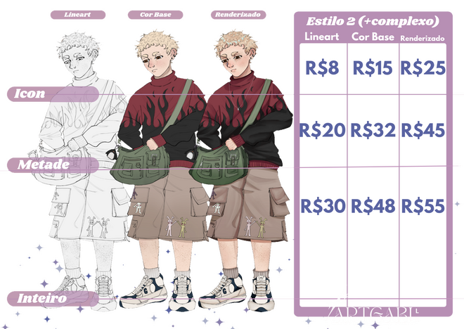 - A arte será feita unicamente nos estilos apresentados pelo artista.