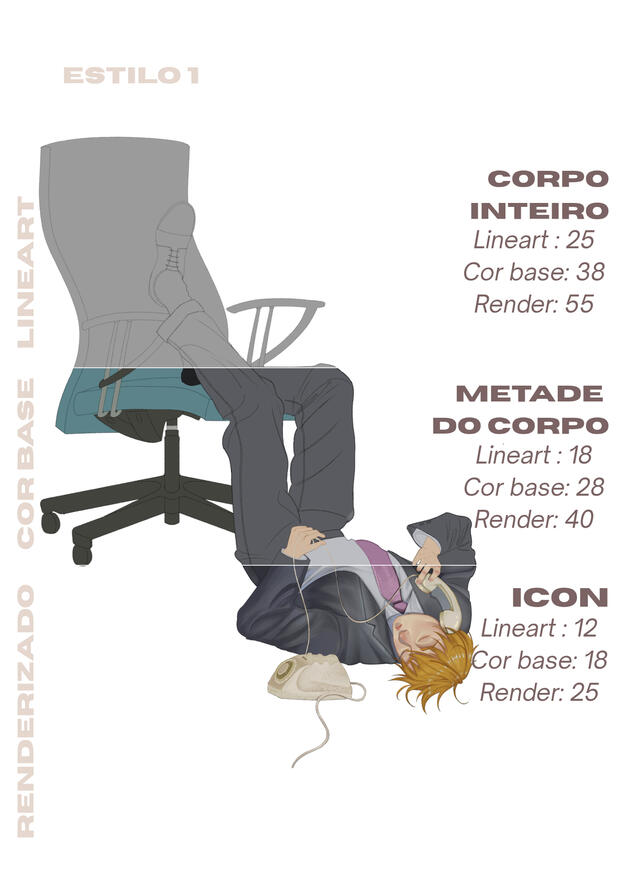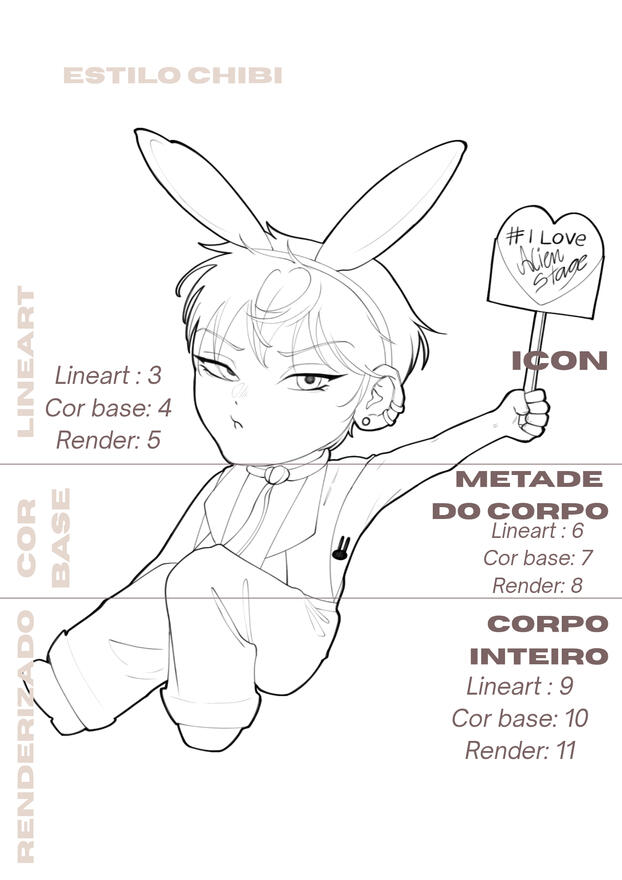 Quando for solicitar uma arte, é obrigatório dar uma ficha de referências o mais completa possível. Para que eu possa visualizar melhor suas ideias e garantir que o resultado final atenda às suas expectativas.